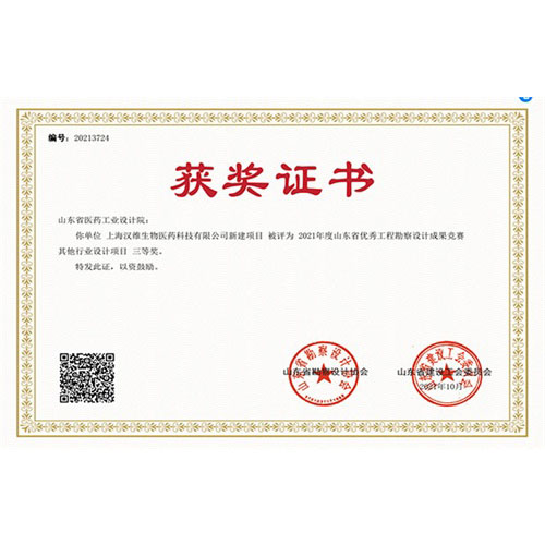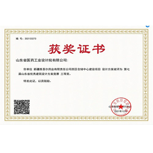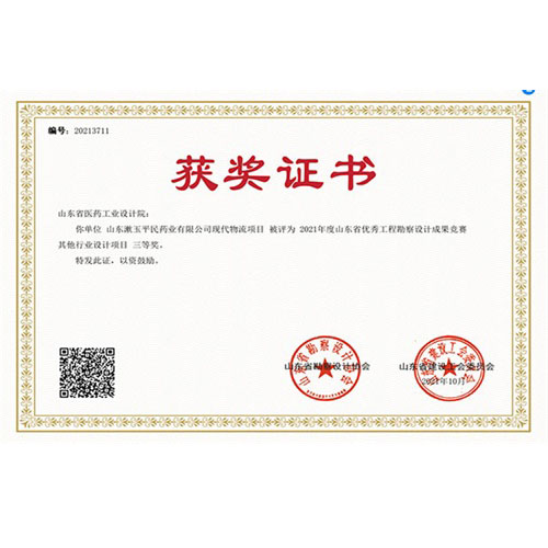 2021年度山東省優秀工程勘察設計成果競賽其他行業設計項目三等獎