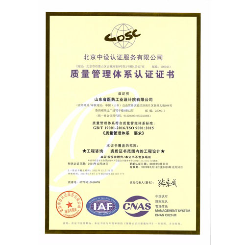 質量管理體系認證證書