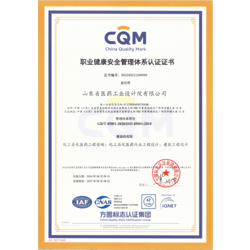職業健康安全管理體系認證證書