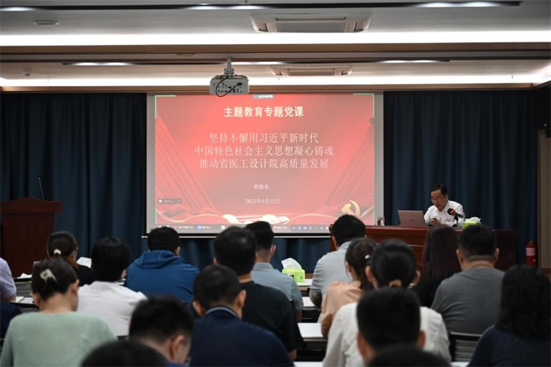專題黨課以《堅持不懈用習近平新時代中國特色社會主義思想凝心鑄魂 推動省醫工設計院高質量發展》為題,從“深入領會學習貫徹習近平新時代中國特色社會主義思想主題教育的總要求和根本任務、“習近平新時代中國特色社會主義思想的內容體系”、“堅持不懈用習近平新時代中國特色社會主義思想凝心鑄魂,推動省醫工設計院高質量發展”等三個方面進行了深刻闡述。