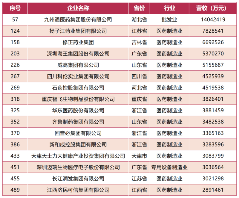 中國(guó)民營(yíng)500強(qiáng)發(fā)布 14家民營(yíng)醫(yī)藥企業(yè)上榜