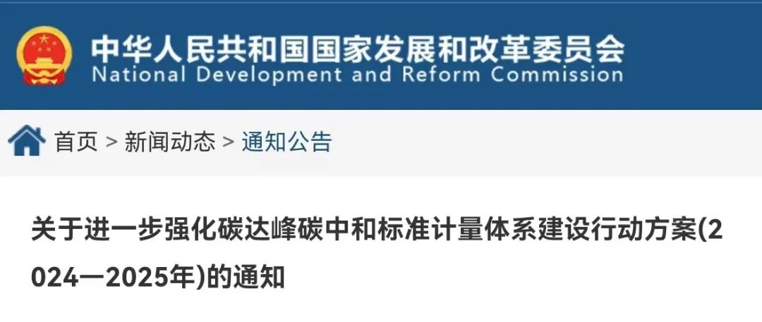 國家發展改革委 市場監管總局 生態環境部關于進一步強化碳達峰碳中和標準計量體系建設行動方案(2024—2025年)的通知