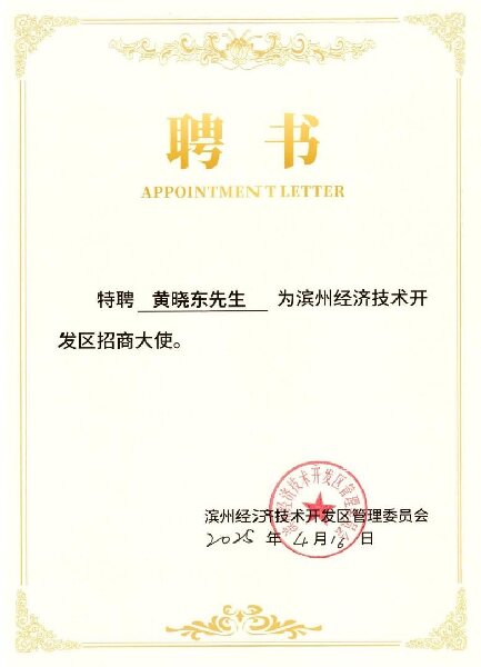 黃曉東被聘為濱州經濟技術開發區招商大使