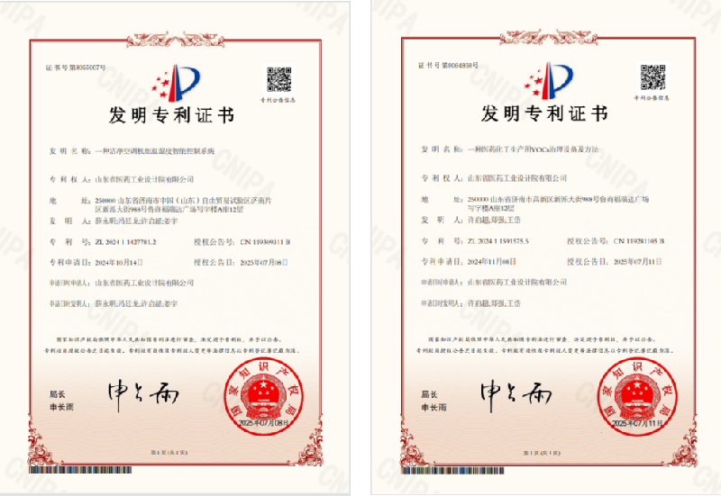 近日,省醫工院自主研發的“一種潔凈空調機組溫濕度智能控制系統”和“一種醫藥化工生產用VOCs治理設備及方法”獲國家發明專利授權,標志著公司在醫藥工程設計、智能化控制及低碳環保領域取得重要突破。